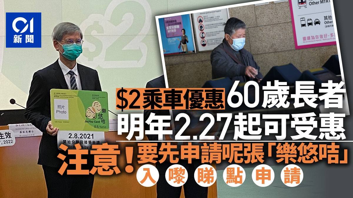Jun 30, 2021 · 勞工及福利局長羅致光今日(6日30日)宣布,政府長者及合資格殘疾人士公共交通票價優惠計劃(2元乘車優惠)明年2月27日將擴展到60歲至64歲的人,惟必須申請專用的個人八達通「樂悠咭」,以防止該優惠被濫用。政府並將擴展2元乘車優惠至紅色小巴、街渡及電車。「樂悠咭」將於本年8月2日起.